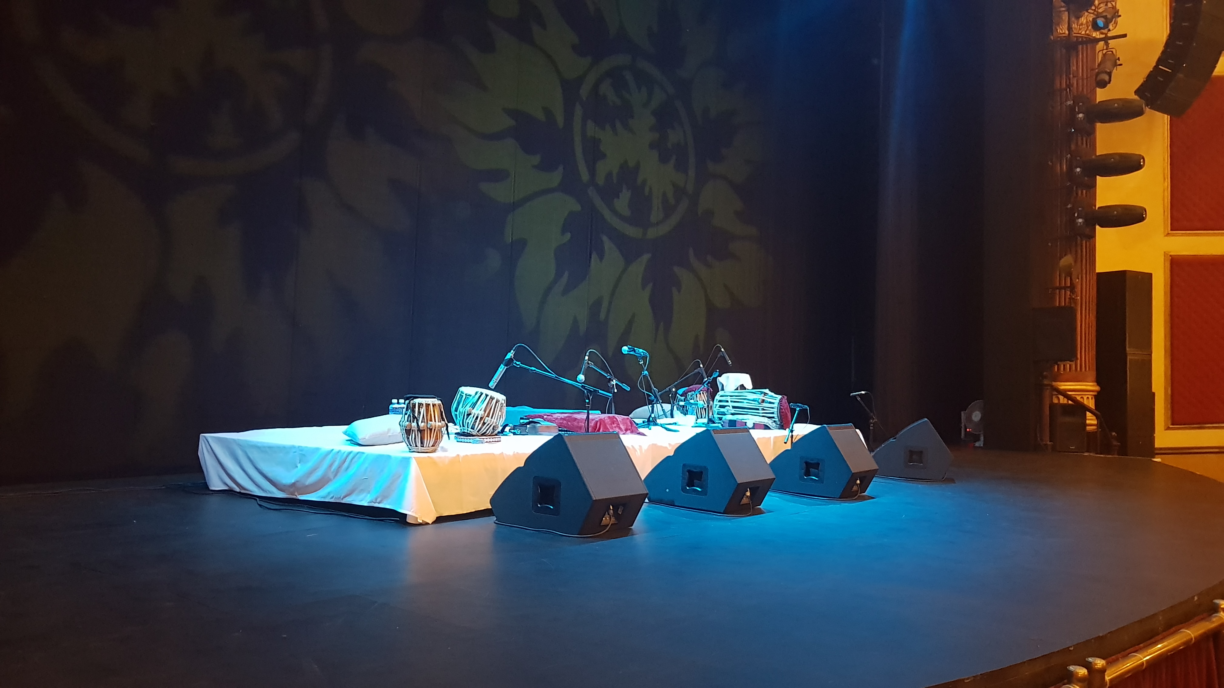 We are ready to delve deep into the Valleys Of Kashmir and explore through music, their intricacies. The theatre bells ring, ushering the excited audience into the Lyric Theatre. A few minutes in, we hear introductions of the artists by Nisaar Bhai, detailing the Gharanas and musical lineage of each of the artists. The artists make their way onstage, with the audience applauding in appreciation. Soulful music is upon us in the form of Strings, Wind and Percussion.