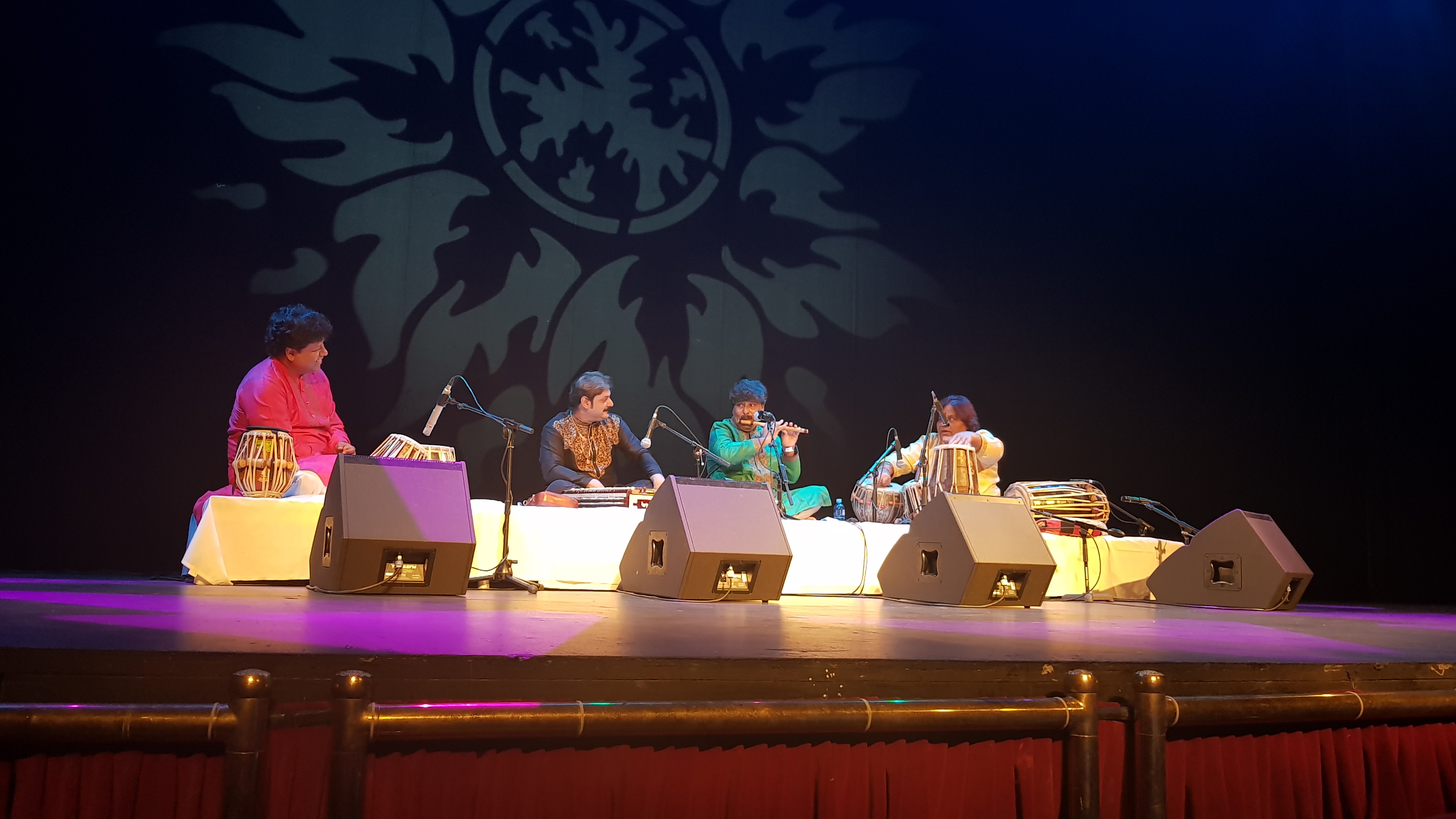 The warmth of the November sun shone brightly on this spectacular summer Sunday; as if a prelude to extend to Ragas of The Valley, on my way to concert we enjoy clear skies, the radio playing some golden oldies. I have my cd’s in-hand ready to get signatures from the musical geniuses that we are about to witness. Inner Circle Entertainment and Nisaar Bhai, a big thank you for making this possible for us music lovers that are starved for this kind of music that appeals to the soul. Last year we were treated to Niladri Kumar and Vijay Ghate, they enthralled us with yet another amazing show of Sitarkhani and Tabla. This year we had four artistes showcasing their amazing talents. Santosh Sant on the Bansuri, Sandip Chatterjee on the Santoor, Pt. Bhawani Shankar on the Pakhawaj and Subhankar Banerjee on the Tabla. I admittingly proclaim my love for the Pakhawaj, and having previously seen and met Pt. Bhawani Shankar, my expectations sky rocket. Which Ragas will they play? The excitement mounts!