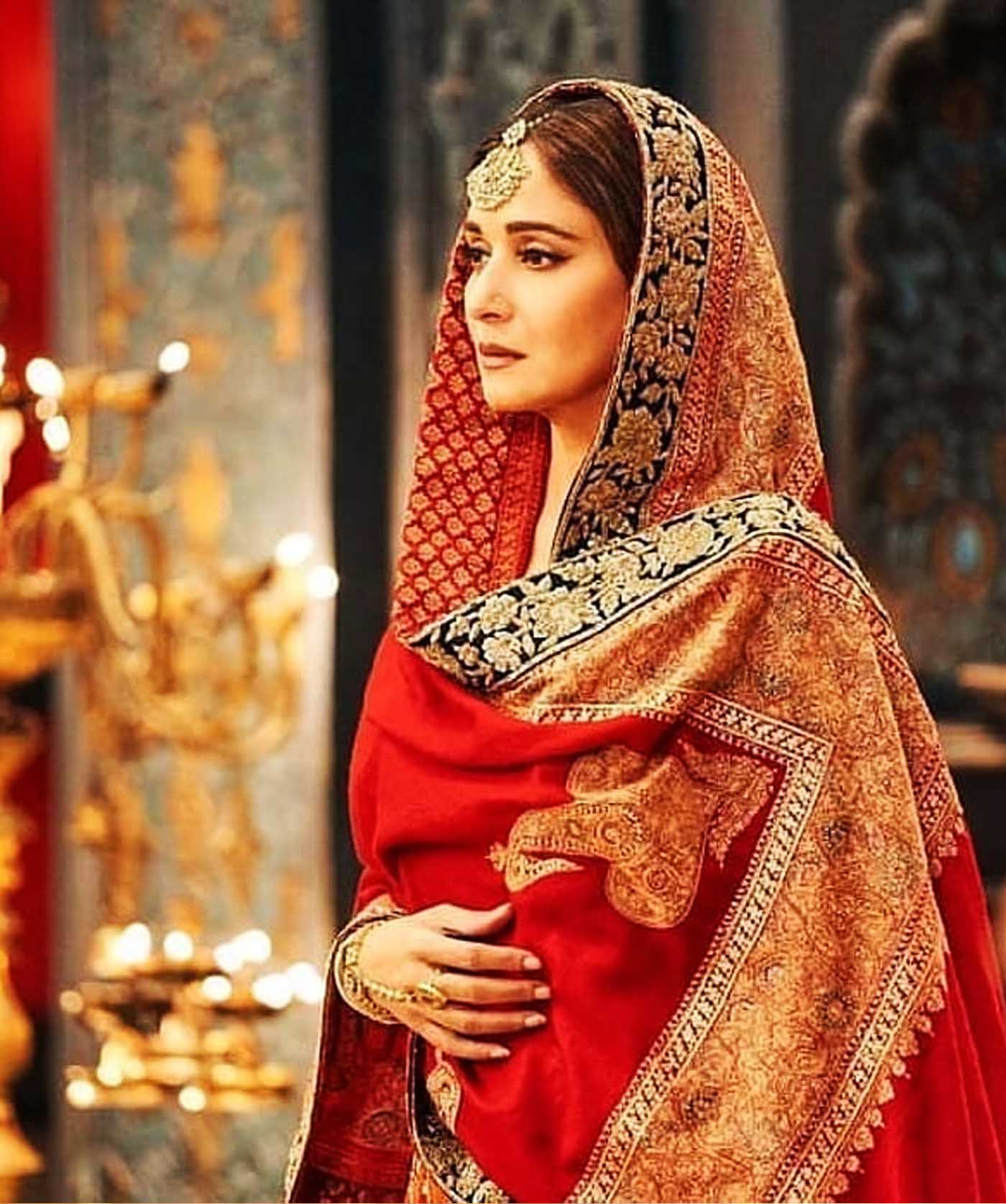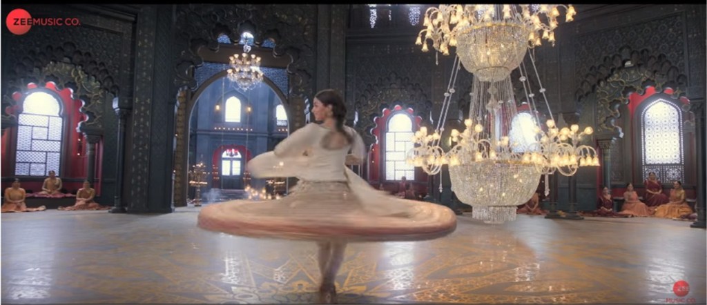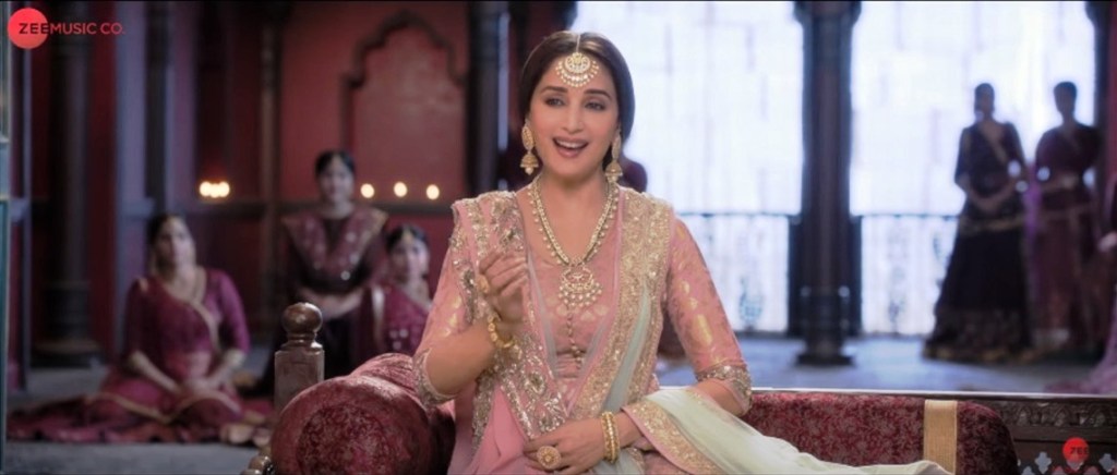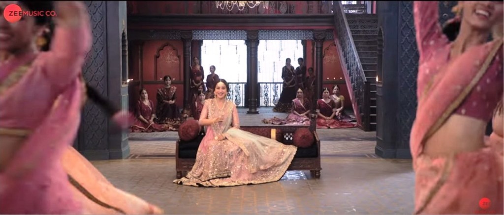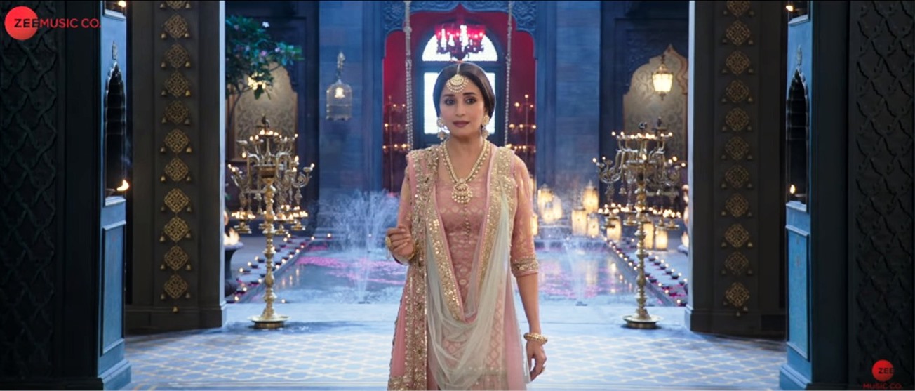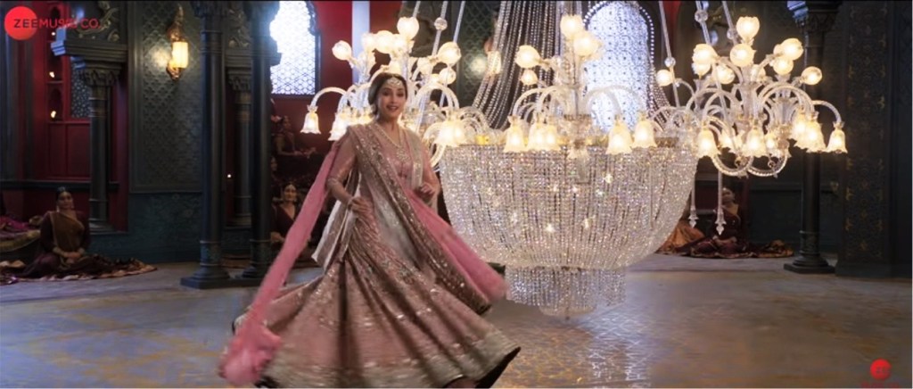 Pritam presents the opening Of “Tabaah Ho Gaye” in a vast orchestral sound-stage, giving the aural atmosphere of grandness and remains loyal to to its semi classical structure. Not The Santoor, but the Turkish Qanun (Played by Turkish exponent Tamer Pınarbaşı) opens the track, a string of Sargams ensue by the all-female chorus together with the German Glockenspiel (Played by Aditya Dev & DJ Phukan), that match the swaras on point. The Indian equivalent of the Glockenspiel would be the Jal Tarang; it is so amazing to hear how well these two instruments work together. A soft thud of the Dholak is heard, then the Sitar strums with Violins, Violas and hints of Cello captivate you with angelic humming by the chorus, they reach a mid-crescendo pause. The angelic Voice of Shreya Ghoshal appears, her restrained rendition, her lyric that of heartache and pain so vibrantly articulated by Amitabh Bhattacharya. Shreya sings her heart out especially the line ‘Tum Magar Bewafa Ho Gaye‘, hear the anguish in her voice, it makes your heart spin. Take note of the tabla beat as the title of the song is repeated, it is in ektaal and represents that moments where Bahaar Begum’s sadness reaches her lips. In the promo of the Video we see a devastated Madhuri Dixit entering her home, and throws off her Dupatta.