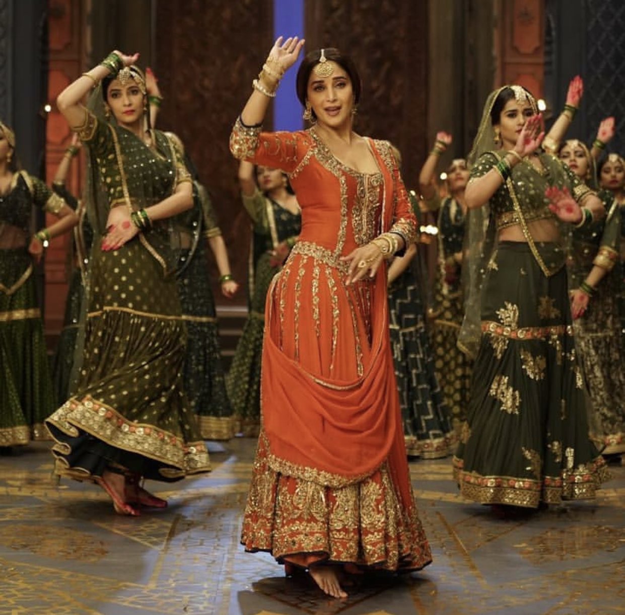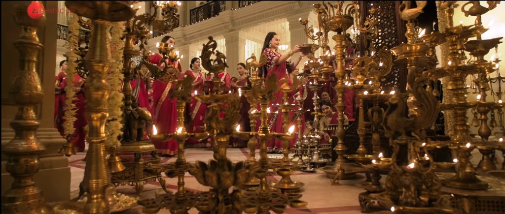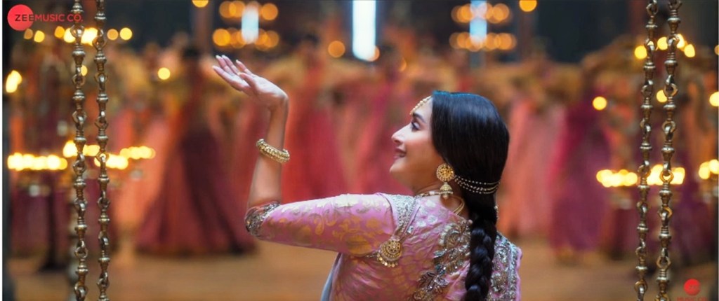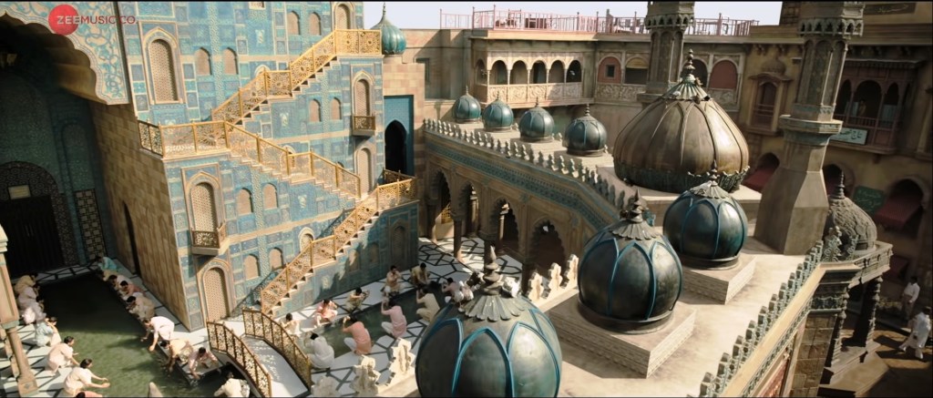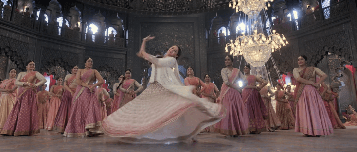 Pritam presents the opening Of “Tabaah Ho Gaye” in a vast orchestral sound-stage, giving the aural atmosphere of grandness and remains loyal to to its semi classical structure. Not The Santoor, but the Turkish Qanun (Played by Turkish exponent Tamer Pınarbaşı) opens the track, a string of Sargams ensue by the all-female chorus together with the German Glockenspiel (Played by Aditya Dev & DJ Phukan), that match the swaras on point. The Indian equivalent of the Glockenspiel would be the Jal Tarang; it is so amazing to hear how well these two instruments work together. A soft thud of the Dholak is heard, then the Sitar strums with Violins, Violas and hints of Cello captivate you with angelic humming by the chorus, they reach a mid-crescendo pause. The angelic Voice of Shreya Ghoshal appears, her restrained rendition, her lyric that of heartache and pain so vibrantly articulated by Amitabh Bhattacharya. Shreya sings her heart out especially the line ‘Tum Magar Bewafa Ho Gaye‘, hear the anguish in her voice, it makes your heart spin. Take note of the tabla beat as the title of the song is repeated, it is in ektaal and represents that moments where Bahaar Begum’s sadness reaches her lips. In the promo of the Video we see a devastated Madhuri Dixit entering her home, and throws off her Dupatta.
