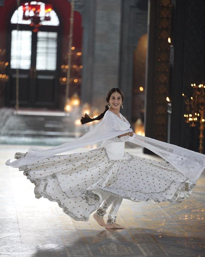 Proximately after the final lyric verse, we get a split second pause and then the thunder rolls out, Bols are recited by the male chorus singers matched precisely by the tabla, in Kathak Tarana style. We have been presented with this in the video that was released and Madhuri Dixit performs exemplary, matching every intonation with her Mudras, Nazakat and Harkat; this is where Bahaar Begum uses dance to portray this painful love that she has endured, her facial expressions are testament to her ability, she leaves us exasperated and wanting more, but do we get more? Yes, we do! Thank you Pritamda! Another split second pause, the Qanun flourish begins a dramatic entry of the Pakhawaj with the Tabla, the bols move to Teentaal, and what we have here is something out of this world, every Madhuri fans’ dreams answered, I am sure when we witness this piece to Madhuri dancing, we will all be left in shock as Bahaar Begum expresses her hurt in dance. A couple of seconds in, the Sitar casts its spell on us, and one of the most beautifully heart-aching Alaaps i have ever heard by Shreya Ghoshal, I am so grateful for this. Madhuri Dixit and Shreya Ghoshal have given the next generation something solid to remember. The exasperation in Shreya’s voice when she ends the song with ‘Tabaah Ho Gaye‘ is gut wrenching. Shreya Ghoshal sings so gracefully, it makes me wonder how composers are not using her voice to its potential; her alaap intertwined singing and her diction, even the word ‘Tabaah‘ has emphasis on the ‘h’ at the end. Pritamda take a bow!