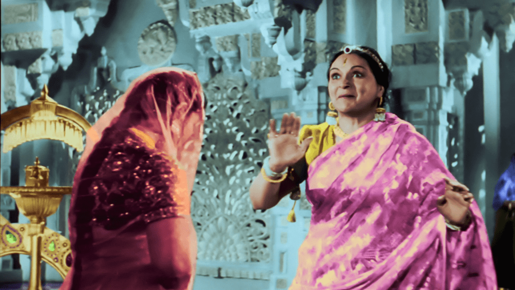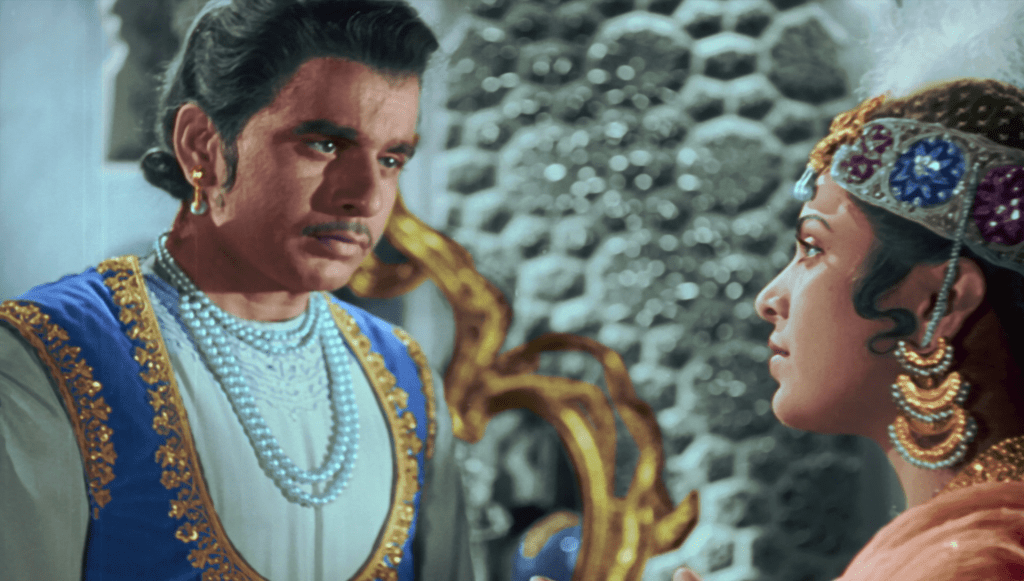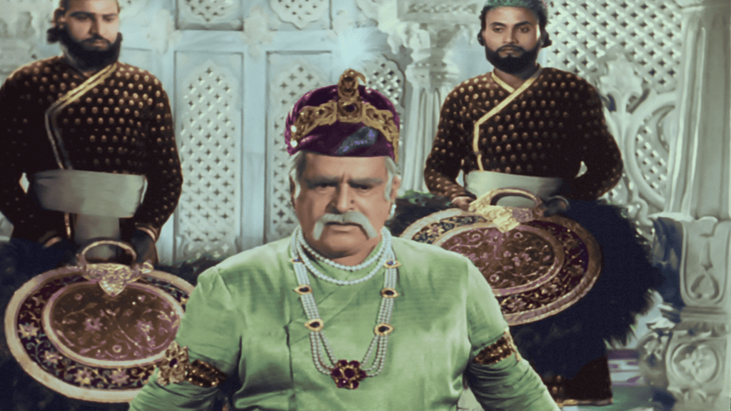 With that being said, let talk about the performances. The film belongs to its principle characters. I think more than anything, it was their conviction in playing their parts that made Mughal-E-Azam a resounding success. Prithviraj Kapoor as Shahenshah Akbar is exquisitely rendered, there is not a point in the film where he loses focus. He embodies the Mughal Emperor with such a creative streak, that we forget Prithviraj Kapoor. Same can be said for Salim played by Dilip Kumar, a character of great nobility, who probably drew from his own personal experience. His interaction with Anarkali, Akbar or even Jodhabai are resoundingly beautiful. Madhubala as Anarkali embodies her soul, Madhubala is Anarkali till the end of time. Her scenes are embodied in the audiences’ mind and hearts. Many people still say that when someone mentions Mughal-E-Azam, its Madhubala’s face that they immediately visualise. Durga Khote as Maharani Jodhabai is amazing too, she pours her love and pain into every facet of these reels. The supporting cast too also leave an impact, making sure to bring K. Asif’s dream to life.