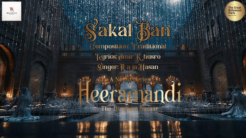 Sakal Ban was the first track to drop from Heermandi, and what a bang it created when it finally made its appearance. There are many great explanations out there for Sakal Ban, and i will share the most important one that i have seen. But i will add some more context; the dhun (tune) is over 750 years old and is seeped in Sufi mysticism. In recent times, i can recall listening to the Qawaali by the Sabri brothers with the same Bandish (Lyric meter) penned by Amir Khusro. In fact when the track dropped i listened to the LP again. It is no doubt a wonderful dhun and bandish. It reappeared in 2015 under the guise of Coke Studio season 8 sung by Rizwan & Muazzam Ali Khan.
