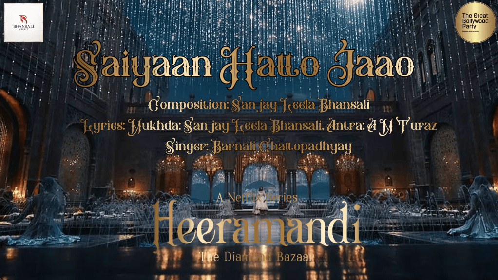 SLB has introduced us to a bevy of singers that are capable of performing masterfully in Heeramandi. Raga Mahru Bihag is not easy to navigate, but Madhubanti does so well with great effort. It takes many years of practice to be able to render such tracks so gracefully. The swarmandal opens to a throaty alaap in Raga Mahru Bihag, in a mystical landscape. The shehnai sounds the thought of wedding bliss, and the ektaal hypnotizes the superb rendition by Madhubanti. The harmonium is prevalent through out, but did you hear the first interlude? Listen closely, Sanjay plays motifs from Salaam-E-Ishq Meri Jaan from Muqaaddar Ka Sikander as an ode Rekha and Kalyanji Anandji. Sitar, violin and sarangi also decorate this Thumri. . At around 2:40 sec hear Madhubanti scale the Aaroha and Avaroha of Maru Bihag like a superstar! I would sure love to hear more in the future by Madhubanti!! It really gives me great hope to see that younger singers have this kind of vocation and skill. Please also make sure you listen Madhubanti’s thumri from the film Goldfish titled Bachpan Ki Galiyan and her rendition of Siva Tere from Sanjay Leela Bhansali’s album – Sukoon.